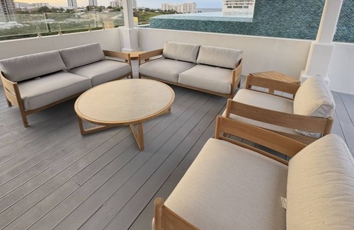 3 bedroom, 3.5 bath PH Views from both the terrace and the balcony of both the lagoon and the Ocean, Sunsets like no other, Terrace with bar, 25 ft pool, outdoor shower.