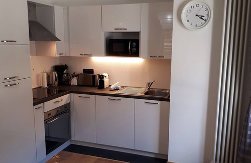 The kitchen, open to the living room, is equipped with as many appliances as possible: large fridge with freezer, oven, microwave, ceramic hob with extractor, dishwasher, and numerous small household appliances for you provide undeniable comfort (coffee machine, Nespresso machine, toaster, blender, juicer, kettle, raclette machine, fondue machine, etc.). It is completed with very complete quality dishes (wine glasses, aperitif glasses, champagne glasses, ...)