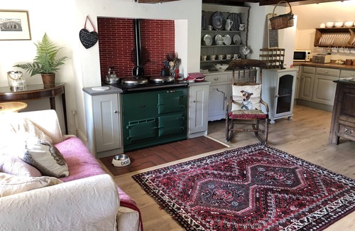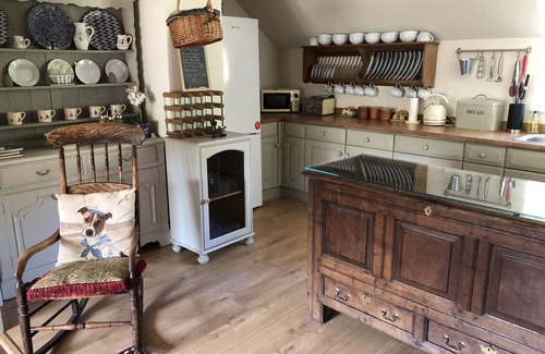 Having undergone a major renovation in 2016, the cottage is extremely comfortable, filled with antiques and sumptuous soft-furnishings. The accommodation comprises a cosy sitting room with wood-burning stove, shelves stuffed with books and games, a flat screen 'Smart' television, DVD player and DVDs, and a Bose iPod dock with iPhone adapter. The kitchen is large, with dining and sitting areas. There is an Aga which is lit in the colder months, electric fan oven and hob, fridge/freezer, microwave, dishwasher and a washing machine and tumble drier in a small, separate utility area. There is wifi access, and a desk situated in the hall, with ample workspace for a laptop, and a wireless printer provided. The downstairs bathroom has bath, electric shower, washbasin, WC, shaverpoint and heated towel rail. The small staircase leads to the first floor where there are two double bedrooms and one twin. There are two super-kingsized beds and two singles; but all the deep, pocket-sprung mattresses are zip-and-link and so may be split or combined as required. The two larger bedrooms have built in wardrobes, while the smaller twin room has a hanging rail and generous drawer space. Also upstairs is a WC, with washbasin and shaver point.