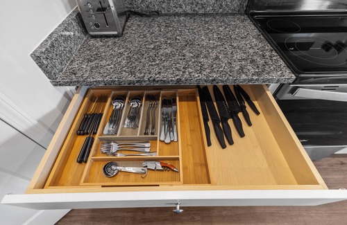 Fully Equipped Kitchen: Cook up a storm in the modern kitchen, complete with Whirlpool appliances, a Ninja Air Fryer, and a coffee maker to fuel your mornings.