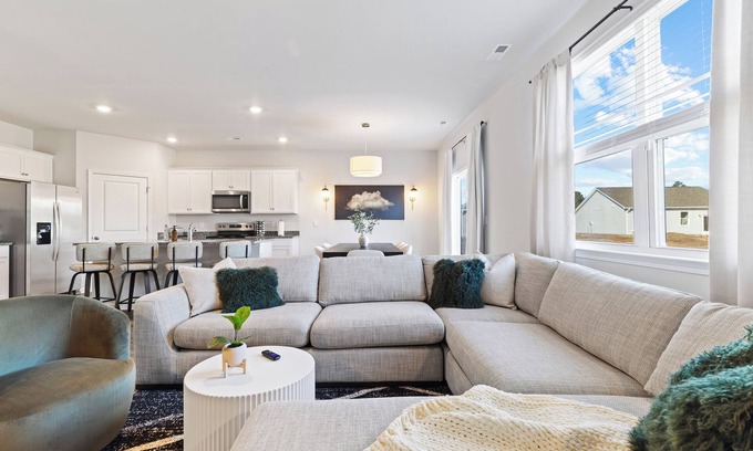 Discover the perfect blend of modern luxury and farmhouse charm at 234 N Farmhouse Drive, proudly presented by Zen Escape Home LLC. This thoughtfully designed retreat is ideal for families, corporate travelers, and extended stays, offering a serene and stylish escape in Wilmington, NC.