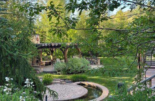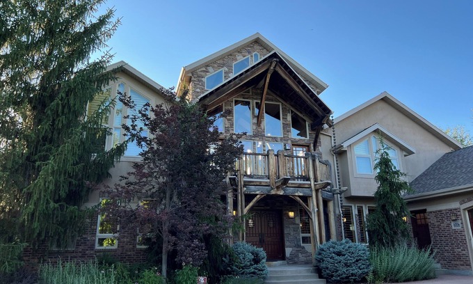 This private home is conveniently located near several ski resorts, including Wasatch Peaks Ranch, Snowbasin, and Powder Mountain, and is a short distance from Park City (38 mi). Perched on 3+ acres with majestic views of Thurston Peak and Snowbasin, this beautifully landscaped property with ample deck space offers a tranquil retreat for guests. The main floor hosts a large well-equipped kitchen, dining room, comfortable living room with oversized leather sectional and fireplace, and 2 half baths. The master bedroom with king bed is also on the main floor, and boasts high ceilings and a large en suite bathroom with a double shower and separate jetted tub. Outside the main level is an expansive deck with several living/dining seating areas and gas grill. The upstairs floor has 3 guest bedrooms, each with a queen bed, and an open office space with a queen futon, 2 full bathrooms (shared among the 3 bedrooms and office), and outside deck space. The lower level contains 2 guest bedrooms, one with an XL full bed and ensuite bathroom, and one with a queen bed. It also has a theater room with 9 reclining theater seats, bar and gaming area, and full bath. The lower level walk-out patio is equipped with a hot tub, overhead heaters, and propane grill. House amenities include Starlink WiFi, smart TVs in all bedrooms and common areas, XL washer/dryer, garage space for a large SUV, mud room, under-counter wine refrigerator, and radiant floor heating on main and lower levels.