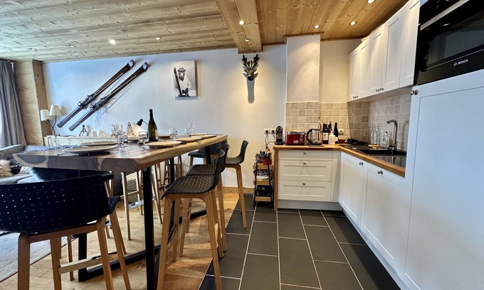 Nestled in the heart of Val d'Isère, this luxurious apartment is quietly located on the 2nd floor of the Le Portillo residence.