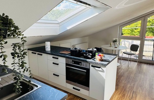 Luxury apartment in Böblingen is located in Boeblingen. Luxury apartment in Böblingen provides accommodation, featuring Bedding/Linens, Wellness Facilities, Fireplace/Heating, among other amenities. This Apartment features Bedding/Linens, Wellness Facilities, Fireplace/Heating, to make your stay a comfortable one.