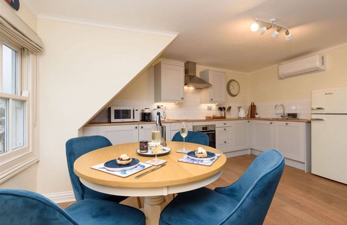 Sundew has been fully refurbished for 2024 and is just beautiful. Every attention to detail has been thought of throughout the works to ensure guests' comfort and enjoyment, and the result is a classical, luxurious, and welcoming space. Perfectly located on the main harbourside street in Looe, the apartment is within easy reach of the beach (less than 5 minute stroll), shops, cafes, restaurants, and the pubs of old Looe. The working fishing port and pleasure craft are a constant source of interest, and you can watch the working boats setting out for sea from the windows.The property is approached by a single flight of internal steps and is arranged on one level. The fully refurbished living/dining kitchen area occupies the whole of the front of the apartment. The views over the town and river can be enjoyed from the dining table and also from the new window seat in the lounge area. The newly fitted kitchen is well equipped and now includes a dishwasher and a Nespresso vertuo coffee machine for the coffee lovers amongst you. There is also a smart TV with a Samsung sound bar and free wifi is provided.The spacious bedroom has a super king-size bed with a luxury tempur mattress and pillows, and the linen is 400 thread count Egyptian cotton so guests can be sure of the most restful and comfortable night's sleep, an essential element of any good holiday! The fully modernised shower room has a large walk-in rain shower and luxury soft towels. There is a newly installed central heating and air-conditioning system ensuring a comfortable stay all year round.Sundew is a great spot for just two, splendidly equipped and with everything you will need close at hand. Parking is available in the Millpool car park just a few minutes walk from the apartment and the cost of this will be reimbursed for stays of 7 nights and longer (Apr-Oct £26.30/Nov-Mar £15.80).