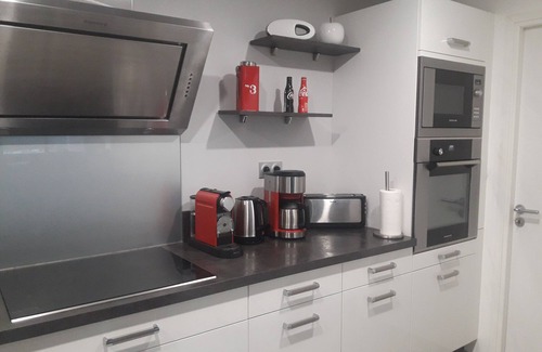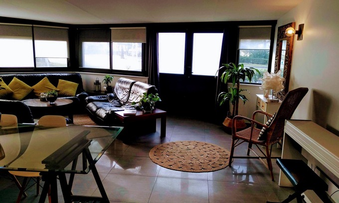 The apartment is on the ground floor and on the ground floor. It includes 2 double bedrooms, 1 bathroom, 1 wc, a large 40 m2 living room, a fully equipped kitchen of 20 m2 and a large 30 m2 terrace for your moments of relaxation, aperitifs, grills and meals.