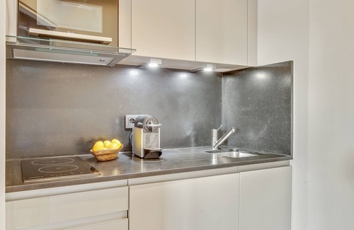The apartment also includes a kitchen, which is equipped with hotplates, a fridge and an oven. It comes with a microwave, toaster, coffee machine (Nespresso), kitchenware and an electric kettle.