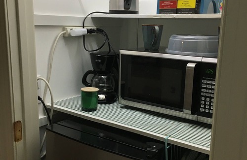 The studio consists one bedroom and full bath with kitchenette, such as microwave, hot water kettle, rice cooker, small toaster and fridge. The smart TV mounts on the wall. The room is closed off to the rest of house and giving a private space. The bottle water , coffee and tea are provided. The silver wares, dishes, wine glasses and other utensils are included as well. The outside grill and patio table are ready to use for cooking out. The laundry is in main building, but you always can use with asking. We added a memory foam mattress top on queen bed to make more softer. The guests allowed to take out, if someone like firm bed. The second bed is folding bed with full bedding supplies. The bedding are all cottons. We are not only changing the sheets, and also changing the duvet and blanket for each guests for hygeian issues.
