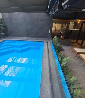 Yes, this City Centre apartment has a swimming pool. Check the Facility Overview section for details about the pool and other available facilities.