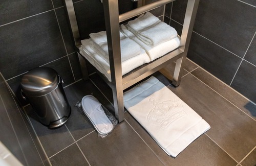 The bathroom with shower and toilet has underfloor heating and has a standard;