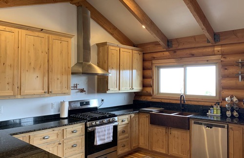 The 1856 sq/ft cabin has 2 master bedrooms (queen beds), 3.5 bathrooms (2 of which are en-suite master baths), a stocked remodeled kitchen, living room, sunroom, loft area (queen bed and 2 twin beds), basement (king bed), and amazing views from the wraparound porch.