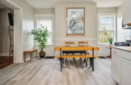 Enjoy a large front sitting porch, perfect for relaxing. The back door opens to a beautiful patio ideal for lounging, grilling, or enjoying live music from the neighboring Peacemaker Brewer. Conveniently located next to popular local businesses and eateries, you may hear some ambient noise. Off-street parking is available. This home features three separate units, perfect for families or friends traveling together. Guests will have access to the entire house and property, except for any locked interior spaces. Once the property is booked, we will send you a YouTube video link that provides a detailed explanation of the space. 🏡🍔🎶