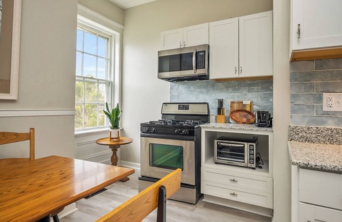 - Fully equipped for your culinary needs: stove, toaster oven, microwave, wine glasses, and more.