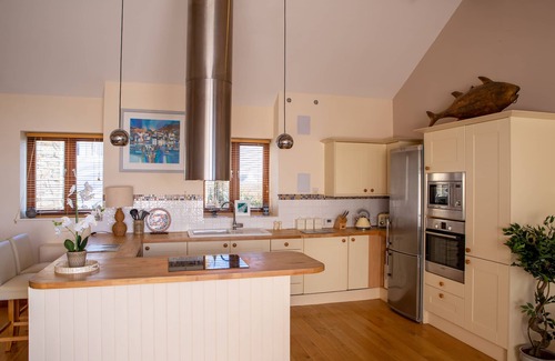 Located just 20m from three beaches this stunning 17th Century former harbour building has been beautifully restored to the highest standard. Perfect for families with or without your four legged pals. The property has underfloor heating throughout and additional central heating too!