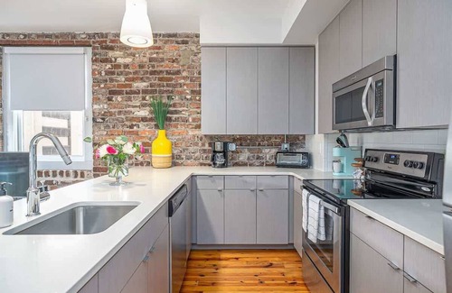 This condo is fully renovated and seamlessly combines period details with contemporary comforts. Indulge in a range of amenities designed to make your stay truly exceptional. The gourmet kitchen is a chef's dream, complete with stainless steel appliances and everything you need to prepare a delicious meal.