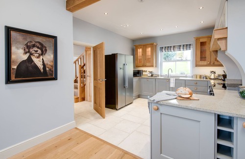 The cottage is heated by oil central heating: The ground floor has an open plan lounge/kitchen/dining room with wood burning stove, Smart TV with DVD player. The kitchen is fully equipped with cooker, hob, fridge/freezer, microwave and dishwasher. Utility room with a washer/dryer. Cloakroom.