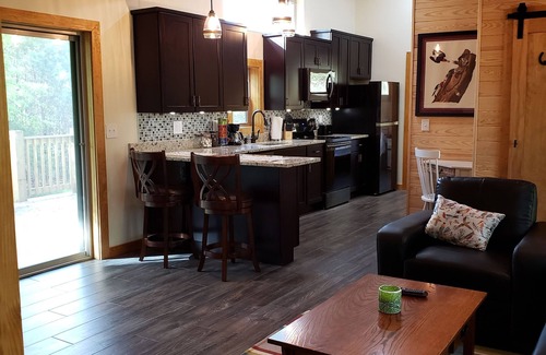 The "Island Bird House" is located on a private Equestrian estate. This newly constructed showcase is a rustically unique 2 Bedroom, 2 Bath, with a recreational space on the ground level. A chef's kitchen with Samsung stainless steel appliances, Espresso cabinets, and surrounded by a palate of gorgeous granite and tile floors. A perfect duet of modern, understated elegance. We offer an inspired, quiet ambiance with a higher quality of vacation life, edged by a woodland forest, trails and a 5 acre lake. The grill is a Charbroil gas cooking surface. ZSTR-12-23-00846.