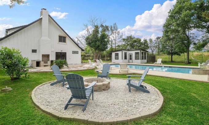 Looking for memories that last? Escape to Bayside Ranch. This spacious retreat offers a charming main house with 6 bedrooms and a unique 2-bedroom garage apartment, perfect for large families or groups. Unwind by the pool, challenge friends in the incredible game room (pool, foosball, arcade!), or relax under the stars by the fire pit. The expansive yard beckons for outdoor fun. And if that’s not enough, you are just 10 minutes to Kemah Boardwalk`s waterfront excitement!
