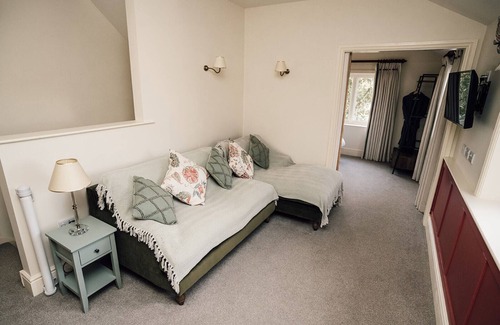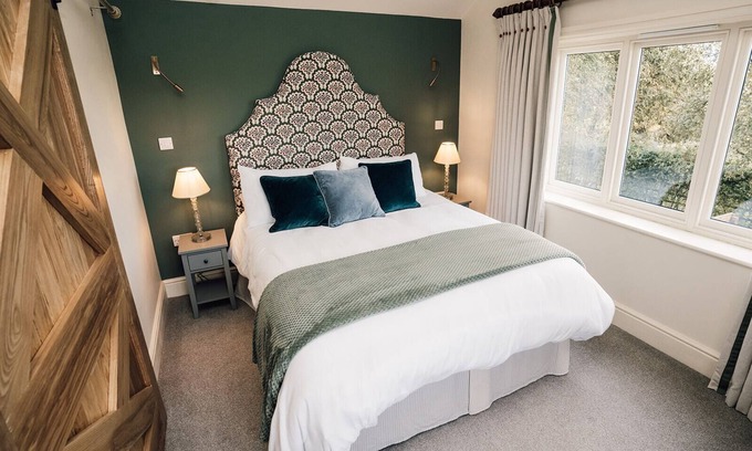 The bathroom is a true sanctuary, featuring a luxurious double-ended roll-top bath and a wet-room rainfall shower for the ultimate indulgence. The romantic bedroom, with its plush king-size bed and exquisite feature headboard, offers the perfect retreat for a peaceful night's sleep after a day of pure relaxation.