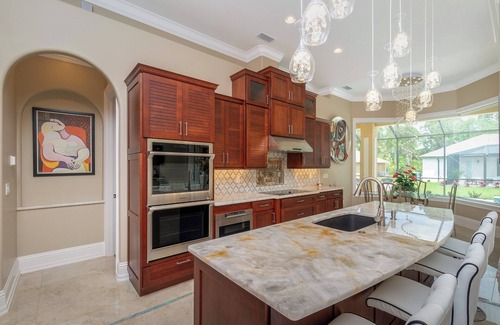 Relax in opulence at this Luxury South Gulf Cove house. This stunning former model home is the perfect escape for families, friends, and anyone seeking both a high-end & tranquil getaway.