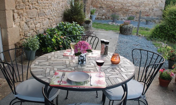 Located in the grounds of the main house but having its own private space and entrance this beautifull gite was totally renovated in 2023. Set in it's own private gardens with ample free parking, our spacious gite will provide you with all you need to relax, rewind and recharge. Many of our guests just like to enjoy the sunshine and the amazing views and above all the peace and transquility of this little known area. Sit on the covered terrace with a glass of some delicious and a platter of local meats or cheeses from one of the local markets and plan your holiday and with so much so see and do in the Indre and neighbouring La Creuse regions, you can certainly fill your days. Go for lunch at Hotel du Lac in Crozant and take the Bateau du Promenade and gently cruise along the river and admire the stunning scenery - great opportunity for photographs too! Visit the Teleski located 10 minutes from Petite Ferme Embir and watch (or even take part) the wakeboarders navigating the obstacles on the lake. The roads in the area are very well maintained and perfect for cycling and we have plenty of secure storage for bikes and equipment. We have a small collection of animals - 3 horses, 3 small sheep and 4 goats together with some chickens . All our welcome to feed them and we can provide some titbits but would ask that we accompany you until they get to know you. We also have a small potager (vegetable patch) and we invite you to pick your own vegetables when they are in season and our hens will provide you with eggs during your stay. We stock the fridge with butter, water and juice and can collect bread and criossants from our local boulangerie if you do not want to go out too early! The gite has a small outside covered cooking area with an electric plancha (grill) so you do not have to clean a dirty BBQ. Evenings can be spent on the terrace, with the fairy lights on and with virtually no light pollution just enjoy the amazing big skies.