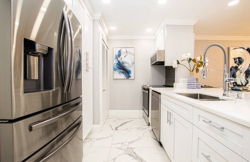 Refresh, relax & rejuvenate here within our lavish ground floor one bedroom condo! You will feel as if you've walked into a magazine when entering this beautifully decorated and high-end condominium. If it's comfort and style you are looking for, you will find it while you work, relax or just enjoy time away from it all! The gourmet kitchen is equipped for the pickiest cook & will not disappoint! All new stainless steel appliances will make it a pleasure to cook in. We have a beautiful bar that has three bar stools and a dining table that sits four comfortably! The living room is designer decorated and you will feel at home in this luxurious condo with a comfortable sectional sofa where you can spend time enjoying our 65" Smart TV & cable. The master bath has a beautiful walk-in shower and a separate area for dressing with lots of bright light. A king size bed awaits you with soft sheets and a cozy comforter to snuggle in while enjoying the 55" Smart TV to enjoy your favorite movie or series! You will enjoy all the brightness of the blues that are carried throughout the condo and the warmth of the textures that you will find. Don't forget to enjoy the evening time on the private patio where you can take in a glass of your favorite beverage and watch a Florida sunset happen right out the back patio area!