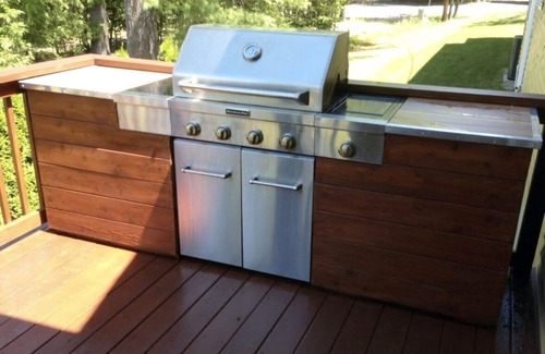 Our large gentle sloping sandy beach is fully equipped with lounge chairs, end tables, a fire pit, a single kayak, a tandem kayak, two stand-up-paddle boards, a large canoe, a paddle boat and a shed full of other inflatable rafts and beach toys for all ages. The garage has several bicycles, outdoor lawn games and an air compressor for filling the water toys. The garage has vehicle parking lifts in it and as such is not available for storage of guest vehicles.