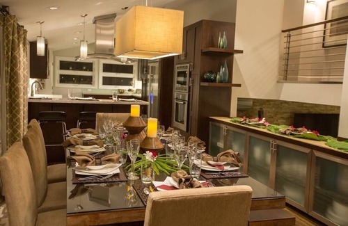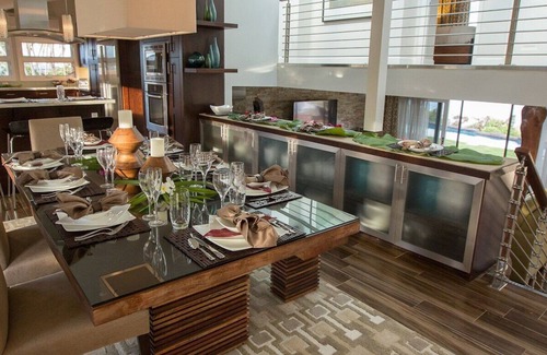 This villa is a stunning contemporary luxury home complete with a POOL, hot tub, and fire pit lounge in a very private setting (no other units/homes on the property with only one adjacent neighbor - the amenities are all yours!). The five-bedroom four-bathroom home was expanded and completely remodeled in mid-2013 into a five-star luxury perfection! With high-end furnishings including Subzero, Miele, Grohe, and Bosch (gas burner) appliances in the kitchen along with stainless details and custom tile/stonework inside and out, no expense was spared. All furnishings were designer hand-picked and coordinated throughout. The entire house and surroundings were designed to capitalize on the peace, beauty, and natural “zen” of the property. From the moment you pass through the secure gated entry, you are greeted by a custom driveway and lush landscaping leading you back to the spectacular island views.