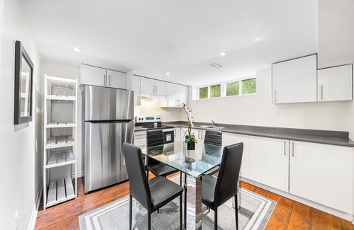 From the moment you arrive, you’ll notice the attention to detail that makes this property stand out. With a private entrance and 2 free parking spaces right on the driveway, getting in and out is effortless. Inside, the modern design invites you to unwind and enjoy your stay. The living area flows seamlessly into the dining space and a fully equipped kitchen, making it ideal for both entertaining and relaxing. Whether you’re preparing a quick breakfast or a gourmet dinner, you’ll find everything you need to cook and dine in style.
