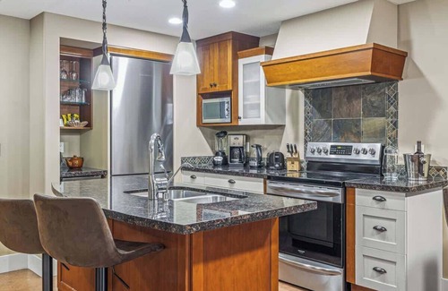 Welcome to the home base of your mountain escape in the Canadian Rockies! Open layout Kitchen/Dining/Living. Highend finishes throughout. Two cozy patios, Master bedroom with king-sized bed and a 5pc en-suite with a soaker tub, and a stand-alone shower. The second bedroom features a queen-sized bed and its own fireplace. Pull-out sofa in the living room for extra guests or movie nights. On-site amenities include an indoor heated pool, hot tub, fitness facility, and heated underground parking.