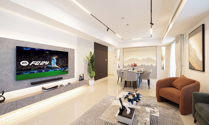 Your home is fully furnished and equipped for you to move in. It consists of a living room, a dining area, four bedrooms, three full bathrooms and one half bathroom, a kitchen, and 4 balconies.