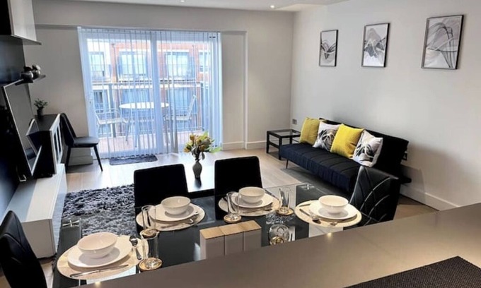An 8-minute walk to Colindale Underground, (Northern Line), you can reach Camden, Hampstead, and Central London in minutes. Enjoy two private balconies, stylish interiors, Hyperoptic Wi-Fi, and a fully-equipped Siemens kitchen, all in a vibrant neighbourhood with shops, cafés, and restaurants on your doorstep.