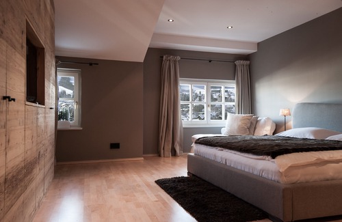 The quietly located luxury apartment has three spacious bedrooms, each with en-suite bathroom and is furnished with a luxurious interior in a modern chalet style.