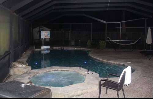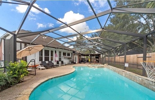 Come enjoy this unique resort style vaction home in Northwest Houston. Located in a very safe quiet neighborhood 20minutes from downtown. This unique backyard comes with a private enclosed swimming pool with huge spa, also an outside tv and sitting deck, in the insde there is plenty of entertainment with full size pool table and multiple tv's inside. Very spacious home with two living rooms, an entertainment room, 4 bedrooms 2.5 baths. Huge kitchen with open concept and plenty of sitting room