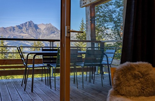 The 20m² terrace faces west with a view of the Pierra Menta.