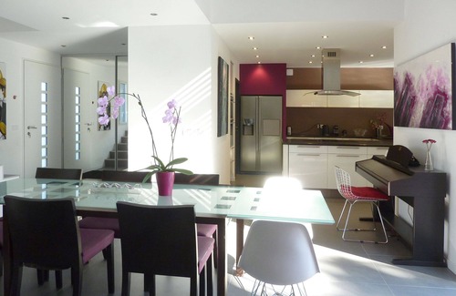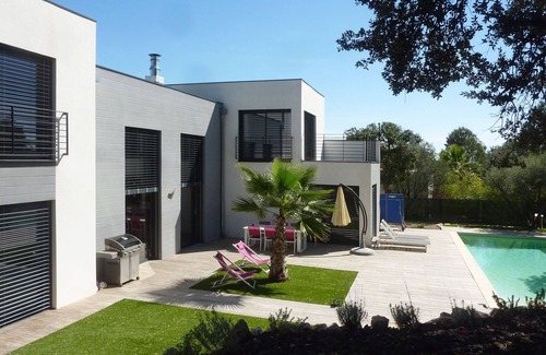 This 220m2 contemporary architect villa on a 1,100m2 tree-lined garden is 35 minutes from the sea, 25 minutes from the river and 10 minutes from Saint Loup peak.