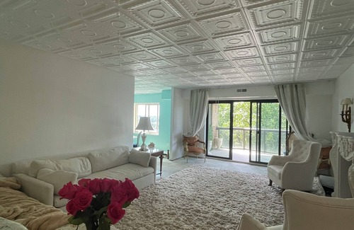 Paris style apartment in the heart of Tyson's Corner boasts tennis, Pools, Spa jacuzzi, walking trails, dog friendly, fully stocked with cooking utensils, parking, and great walkability. 6th floor tree view overlooking city with privacy.