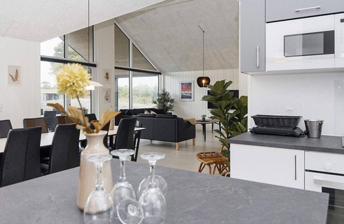 Layout: Kitchen(cooker(electric), coffee machine, microwave, dishwasher, fridge-freezer, high chair), Living/bed room(TV(german television channels, danish TV channels (DR1 and TV2))), bedroom(2x single bed), bedroom(2x single bed), bedroom(2x single bed), bedroom(2x single bed), bedroom(2x single bed), bedroom(2x single bed), bedroom(2x single bed, children's bed), bathroom(washbasin, shower, toilet), bathroom(washbasin, shower, toilet), bathroom(washbasin, shower, toilet), mezzanine(4x single folding bed), game computer, Bubble bath(outside, heated, 6 persons), sauna(outside, 6 persons), heating(electric), terrace, garden furniture, sun loungers, swimming pool(indoor), table tennis table, table football, darts, billiards, air to air heatpump