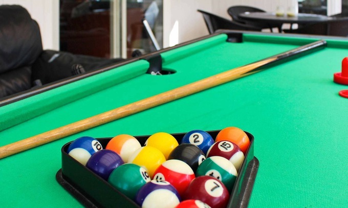 open kitchen(cooker(electric), hood, coffee machine, dishwasher, fridge, tumble dryer, washing machine), Living/bed room(TV(satellite, german television channels, danish TV channels (DR1 and TV2)), CD player), bedroom(double bed), bedroom(double bed), bedroom(2x bunk bed), bathroom(floor heating)(bathtub or shower, washbasin, toilet), bathroom(floor heating)(washbasin, toilet), conservatory, carport, Bubble bath(indoor, heated, 2 persons), heating(electric), terrace, BBQ, swimming pool(indoor, 400 m2), table football, air hockey, air to water heatpump