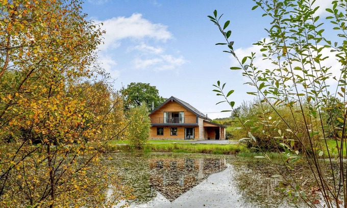 Luxury Rural Hot Tub Lodge with Lakeside Views | Ski Chalet in Rhayader