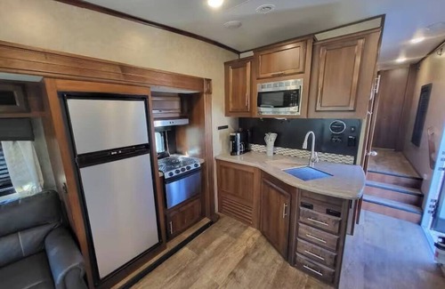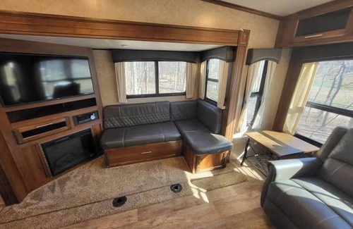 Escape to this stylish, amenity-packed RV in Stanton, just minutes from the stunning Red River Gorge. Perfect for couples or small groups, it features two bedrooms, AC and heating, and a private bath with shower. The master bedroom has a Queen bed and en-suite bathroom. The second bedroom has 2 bunk style Queen beds.. Step outside to peaceful wooded surroundings, or head out for world-class hiking, climbing, and scenic drives. After a day of adventure, return to your cozy home-on-wheels for stargazing and relaxation.