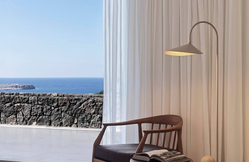 Elegant and stunning, Sirens Song boasts panoramic views of the Aegean Sea and the surrounding landscape. Embracing traditional Cycladic architecture, the pool terrace is built with natural materials, inviting you to experience the island lifestyle. Start your day with an energizing breakfast served al fresco in the dining area, shaded by a pergola.