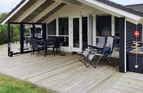 Well-kept holiday cottage with whirlpool located on a large plot just approx. 700 m from the ocean at Grønhøj Strand. Living room in open concept with the kitchen, 4 bedrooms, 2 bathrooms with shower and underfloor heating, whirlpool and sauna. The layout of the house makes it suited for 2 families sharing as there are 2 separate sections with 2 bedrooms and a bathroom each, separated by the living area. Tasteful and modern furnishings in a typical Danish cottage style. The living room is very spacious with a wood-burning stove. Terrace facing east/south/west of which a part is covered. Natural plot surrounded by low shrubs. There are swing and sandpit for the children. No letting to youth groups. A refundable deposit might be charged closer to your check-in date. The security deposit ensures a smooth stay and covers any additional services or consumption charges.This deposit covers utilities consumed during your stay and any additional services that may be taken.The final amount will be adjusted based on actual meter readings, actual usage of extra services, and any remaining balance will be refunded within 21 days after checkout.This deposit simply acts as a prepayment for charges that you would anyways pay for, ensuring a seamless stay and check-out experience.