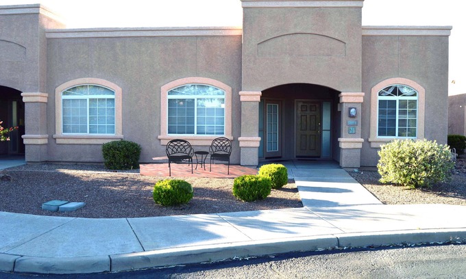 Our property is located in a popular resort in Arizona's high desert at an elevation of 2900 feet. Guests have access to the resort amenities, including a swimming pool and Jacuzzi. Parking is included. The unit has a private entrance to the 400 square feet upscale studio apartment, which comes with linens, towels, blankets, coffeemaker, refrigerator, toaster, wide screen local