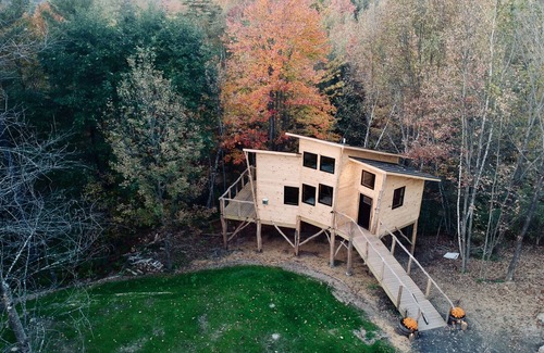 Luxury Treehouse central Stowe/Waterbury. Borders State park. Walk to the Lake! | Cabin in Waterbury Center