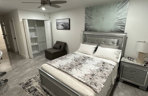 Come, and relax in this calm stylish, newly! built private unit with queen size bed, kitchen, private bathroom, patio while enjoying south Florida.