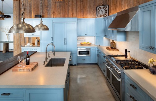 SRH is a rustic but modern chalet with a multi-level great room supported by old growth beams salvaged from Terminal Pier Long Beach and redwood siding sourced from an abandoned train snowshed. The new kitchen keeps with the theme by using railroad spikes for hardware, but no matter how rustic certain elements might be, SRH has all the latest modern amenities: