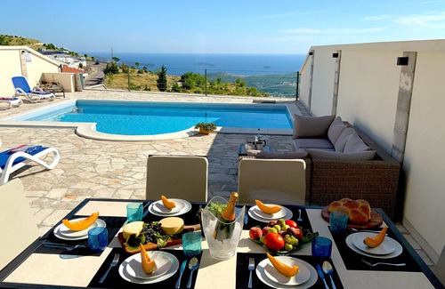 The villa commands magical views over the mountains and the valley to the Adriatic Sea best enjoyed from the private impressive pool (7m x 4m) and extensive terraces. Wake up each morning to an early swim, enjoy sunbathing or 'chill-axing' in the outdoor lounge area. Simply cook up a BBQ and dine Alfresco at the marble topped dining table, whilst watching the sun going down.