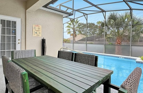 NEW LISTING! Guests staying at the newly remodeled Calabay Cabana enjoy a truly unique and immersive vacation experience just minutes away from Disney, Universal Studios, shopping, and golf. Experience professionally themed bedrooms featuring Lilo & Stitch, Finding Nemo, and Jungle Cruise. Test your skills in the Tiki Bar inspired game room that features a pool table, Golden Tee arcade game, classic arcade game console, darts, and tiki toss. The screened-in lanai offers private pool access, sun lounger chairs, a dining table for 6, BBQ grill (optional), and more. Sleeps 8 comfortably in two king-bed master suites with en-suite bathrooms, along with two large bedrooms with two twin beds each.