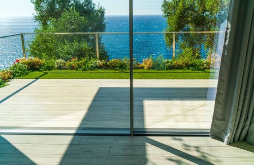 Luxury Villa Olives In The Sea is an exclusively designed villa that offers a perfect combination of elegance and modern facilities on the western coast of Corfu. The villa’s olive trees park gracefully hug the seaside, it’s the perfect place to play for children or just to read a book in the shadow of old trees. The main goal of the architect was to create a harmonious blend of comfort and nature. Nestled on the cliff, this idyllic escape provides a marvelous view of the natural wonder of breathtaking sunsets to the Ionian Sea.